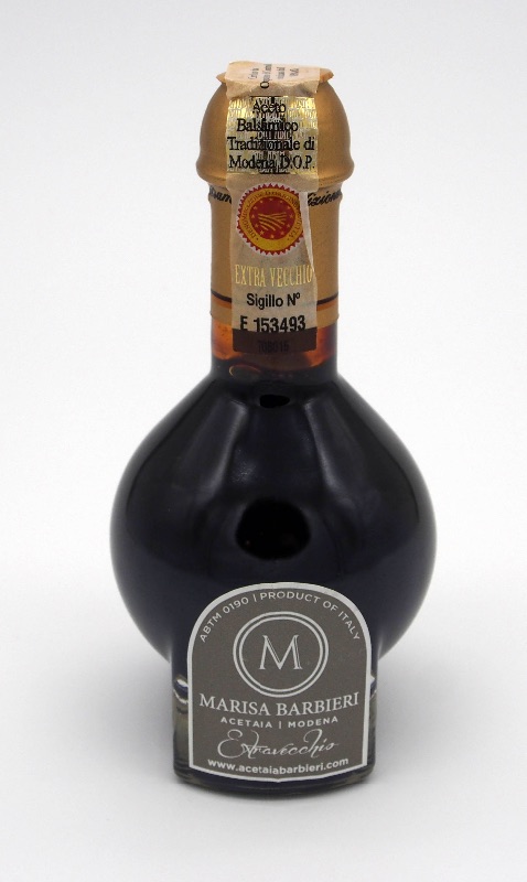 Description: From a battery whose newest barrel dates to 1965, this product has been cherished by Marisa and her family for over 12 years. Its taste, featuring the delicate perfume of resin, is emblematic of the history of balsamic vinegar and of an art unchanged over the centuries, giving the consumer a taste both historical and genuine, suitable to enhance any dish.